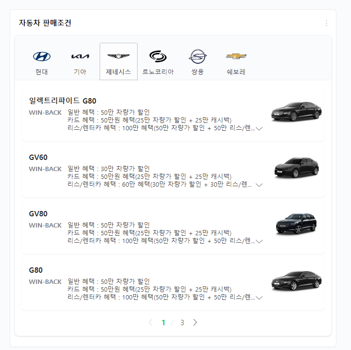 아래 클릭하시면 각 차종별로 판매조건을 확인하실수가 있습니다. 링크클릭하고 조금만 밑으로 내리면 아래 사진을 볼 수가 있다.